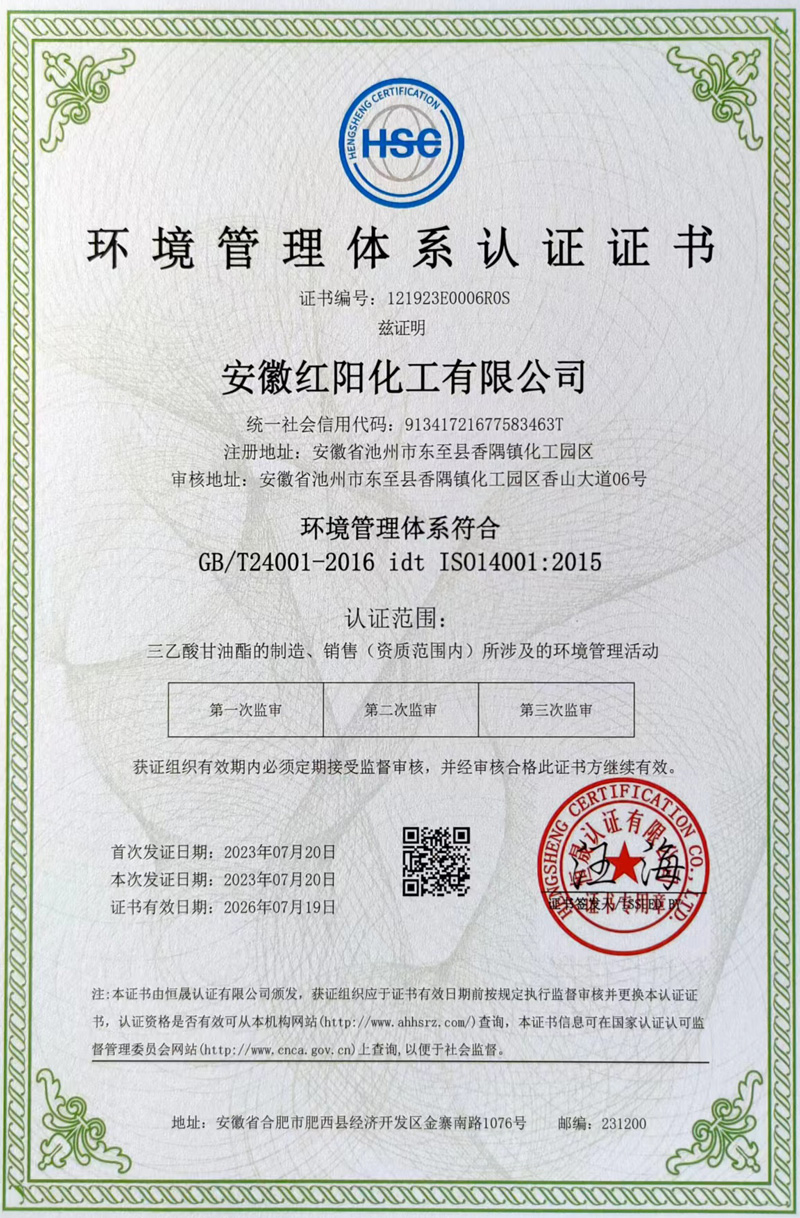 環(huán)境管理體系認(rèn)證證書(shū)
